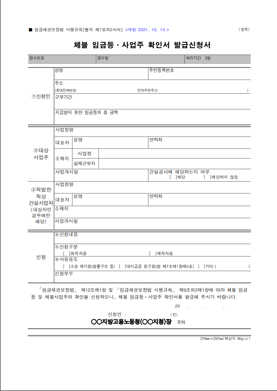체불임금 사업주 확인서